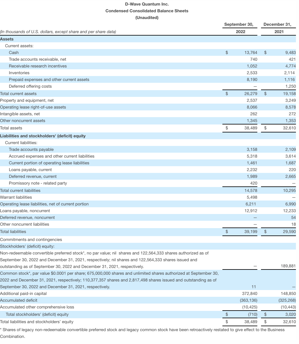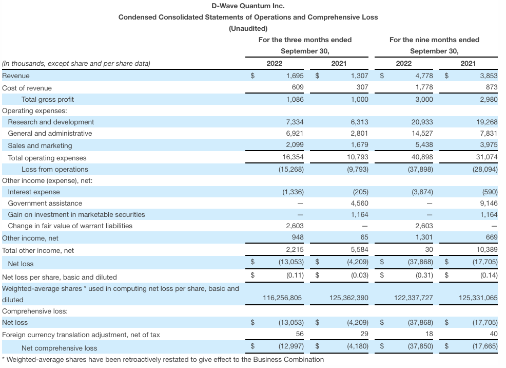 BURNABY, British Columbia & PALO ALTO, Calif. D-Wave Quantum Inc., (NYSE: QBTS) (“D-Wave” or the “Company”) a leader in quantum computing systems, software, and service, and the only provider building both annealing and gate-model quantum computers, today announced financial results for its third quarter ended September 30, 2022.