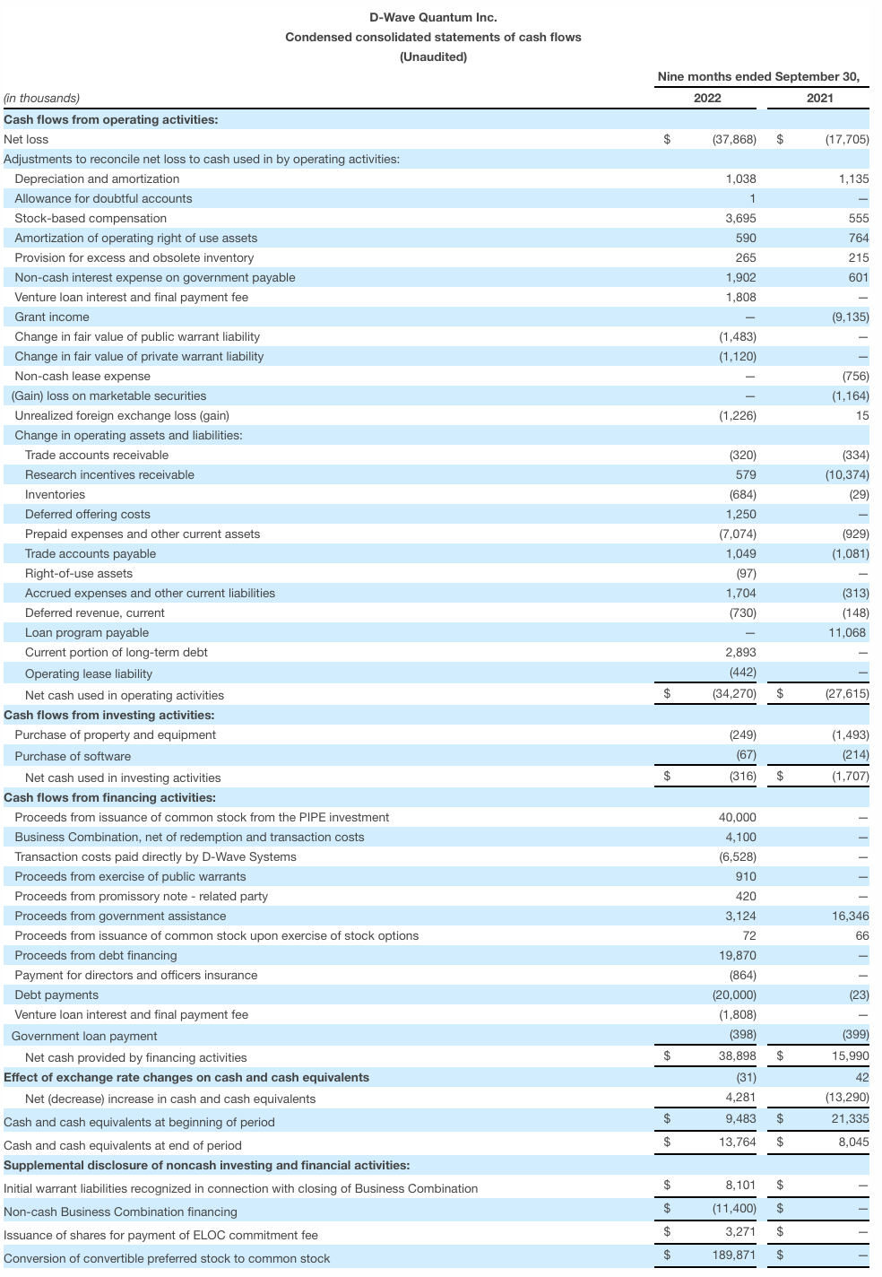 - During the nine months ended September 30, 2022, D-Wave had 63 commercial customers, an increase of 16, or 34%, from 47 commercial customers in the nine months ended September 30, 2021