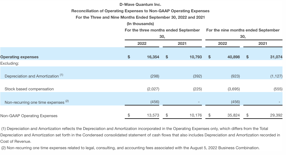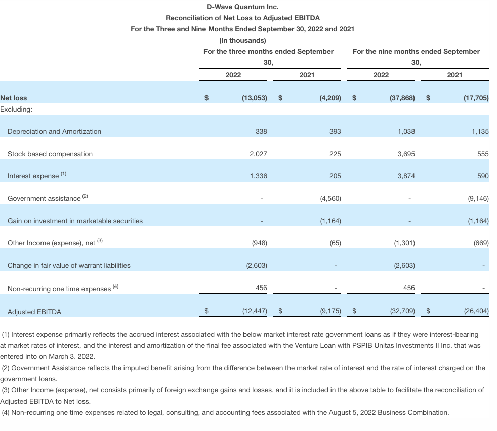 Based on information available as of November 10, 2022, D-Wave is maintaining its fiscal 2022 Revenue and Adjusted EBITDA guidance as follows: